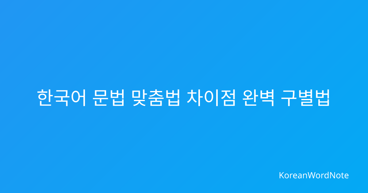 📌 이 글은 한국어 문법 완벽 가이드 2026의 세부 가이드예요. 전체 내용이 궁금하다면 기둥글도 함께 읽어보세요!