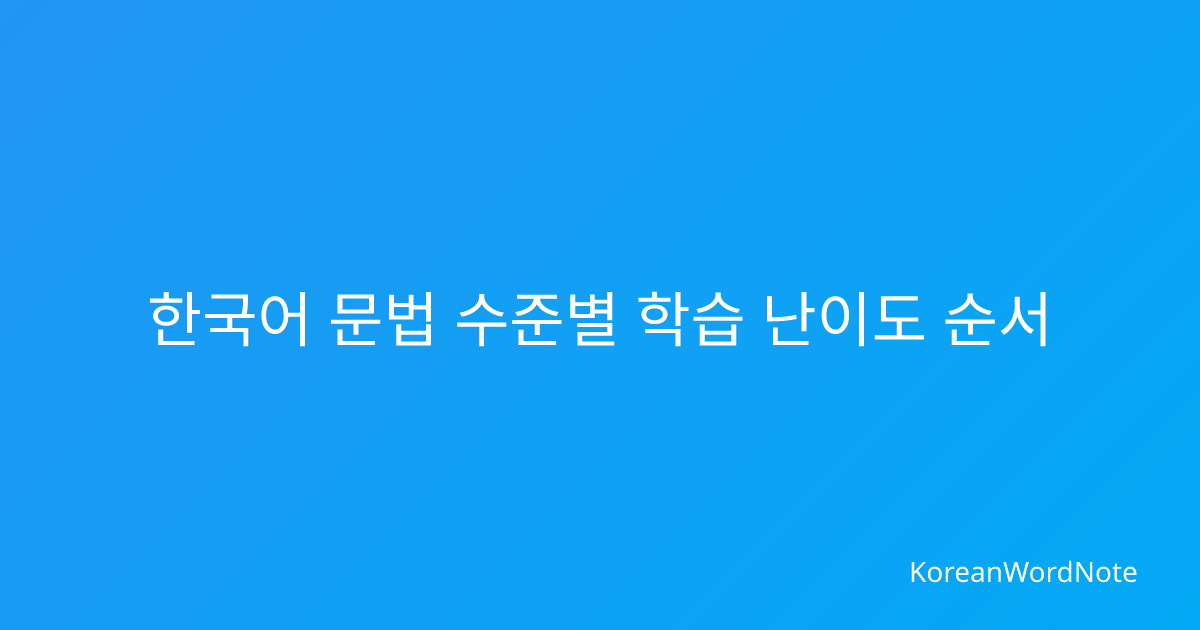 한국어 문법 수준별 학습 난이도 순서 완벽 정리